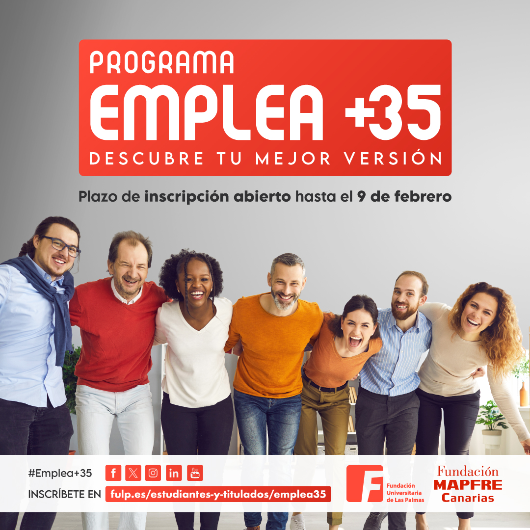 La Fundación Universitaria de Las Palmas y la Fundación MAPFRE Canarias presentan una nueva edición del Programa «Emplea +35», un proyecto que tiene como objetivo facilitar la reincorporación al mercado laboral de personas de entre 35 y 50 años de edad, desempleadas y que cuenten con un título superior universitario o de FP.