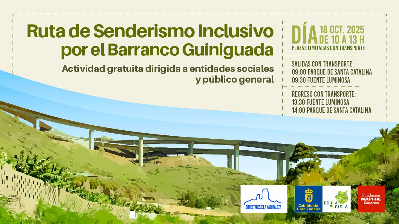Actividad organizada por Fundación MAPFRE Canarias, Cabildo de Gran Canaria y Conectados por la Naturaleza. Conectados por la Naturaleza es ejecutado por la Asociación La Vida Sigue en Positivo y financiado por la Fundación Canaria para el Fomento del Transporte Especial Adaptado y el Cabildo Insular de Gran Canaria.